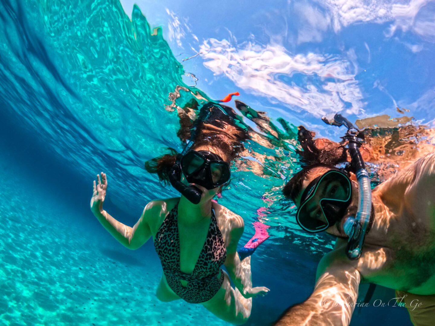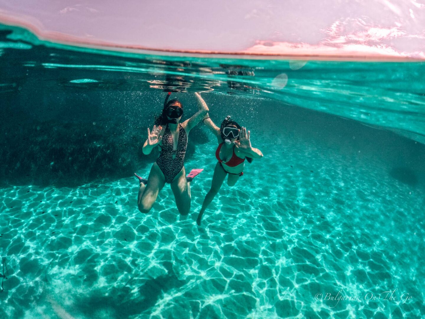 Прекарахме и няколко часа във водата с очила и шнорхел, защото около скалите плуват рибки и могат да се видят и корали. Препоръчваме или ранно идване и оставане до обяд, или късно идване.
